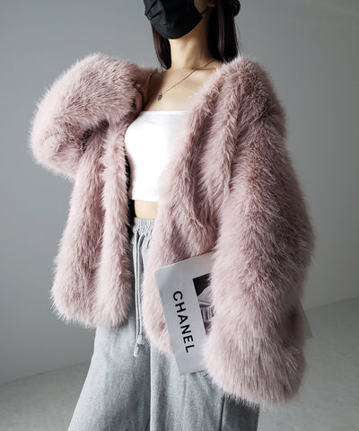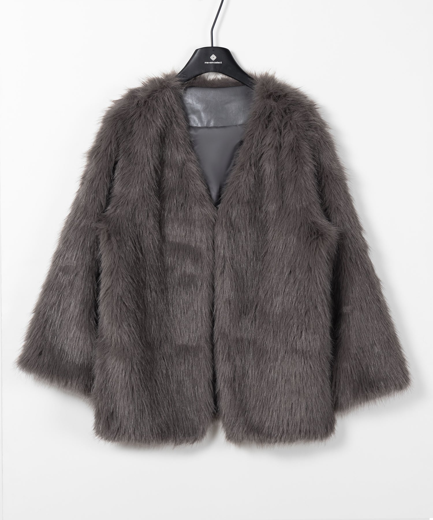 ・ノーカラーショートフェイクファーコート(品番:B06-23-0020)
