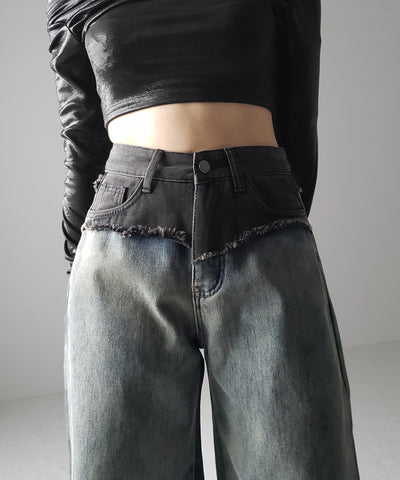 ダメージドッキンググラデーションヴィンテージルーズデニム