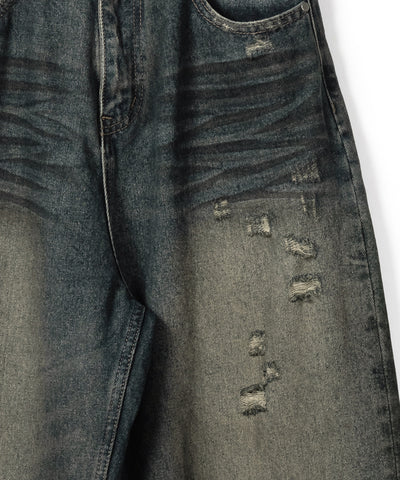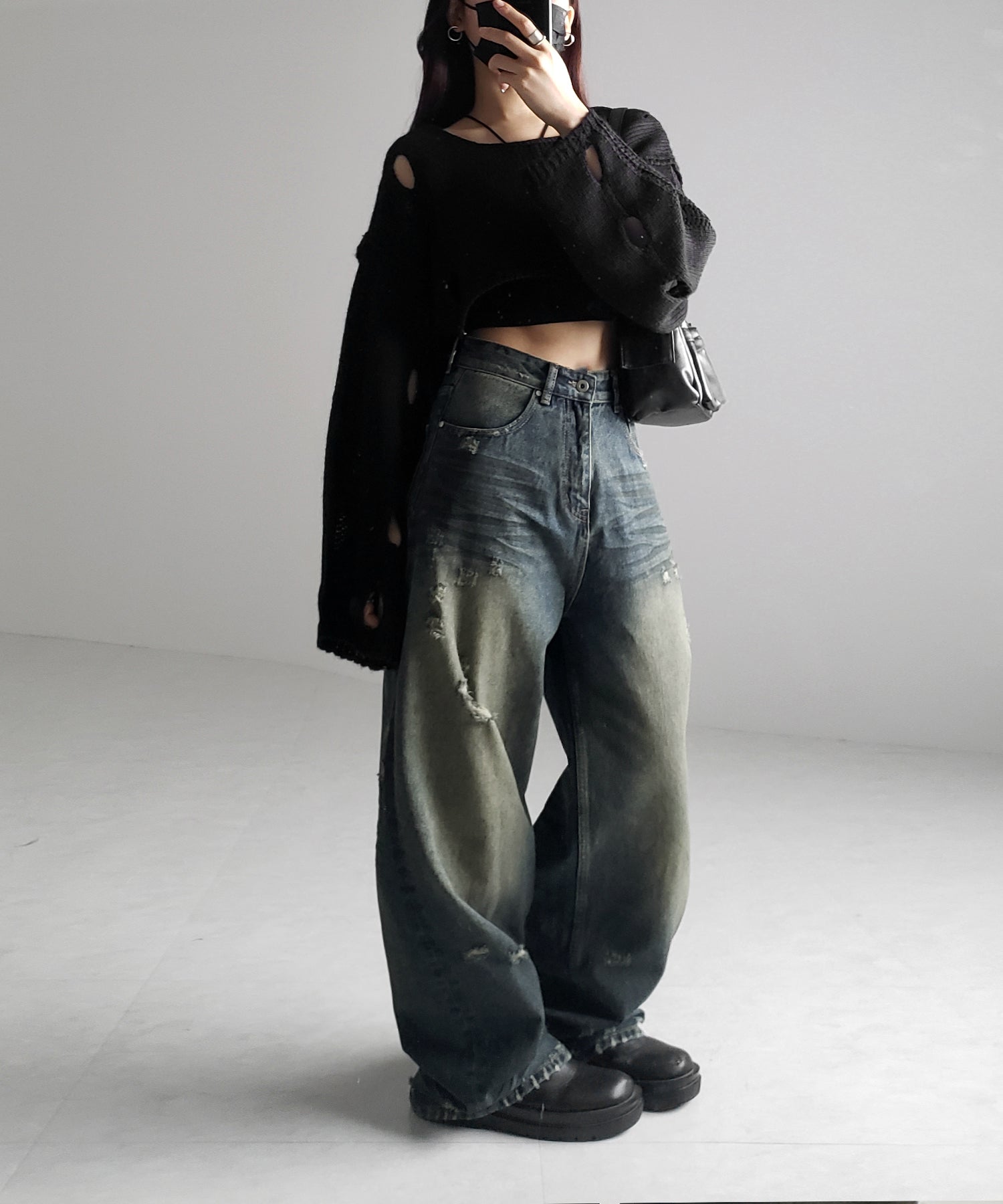\Y2Kスタイルを叶えるヴィンテージ加工ワイドルーズデニム/