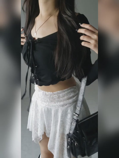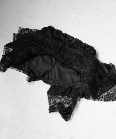 【 インパン裏地付】アシンメトリーフリルレースミニスカート / asymmetry frill lace mini skirt