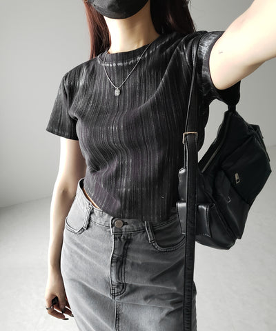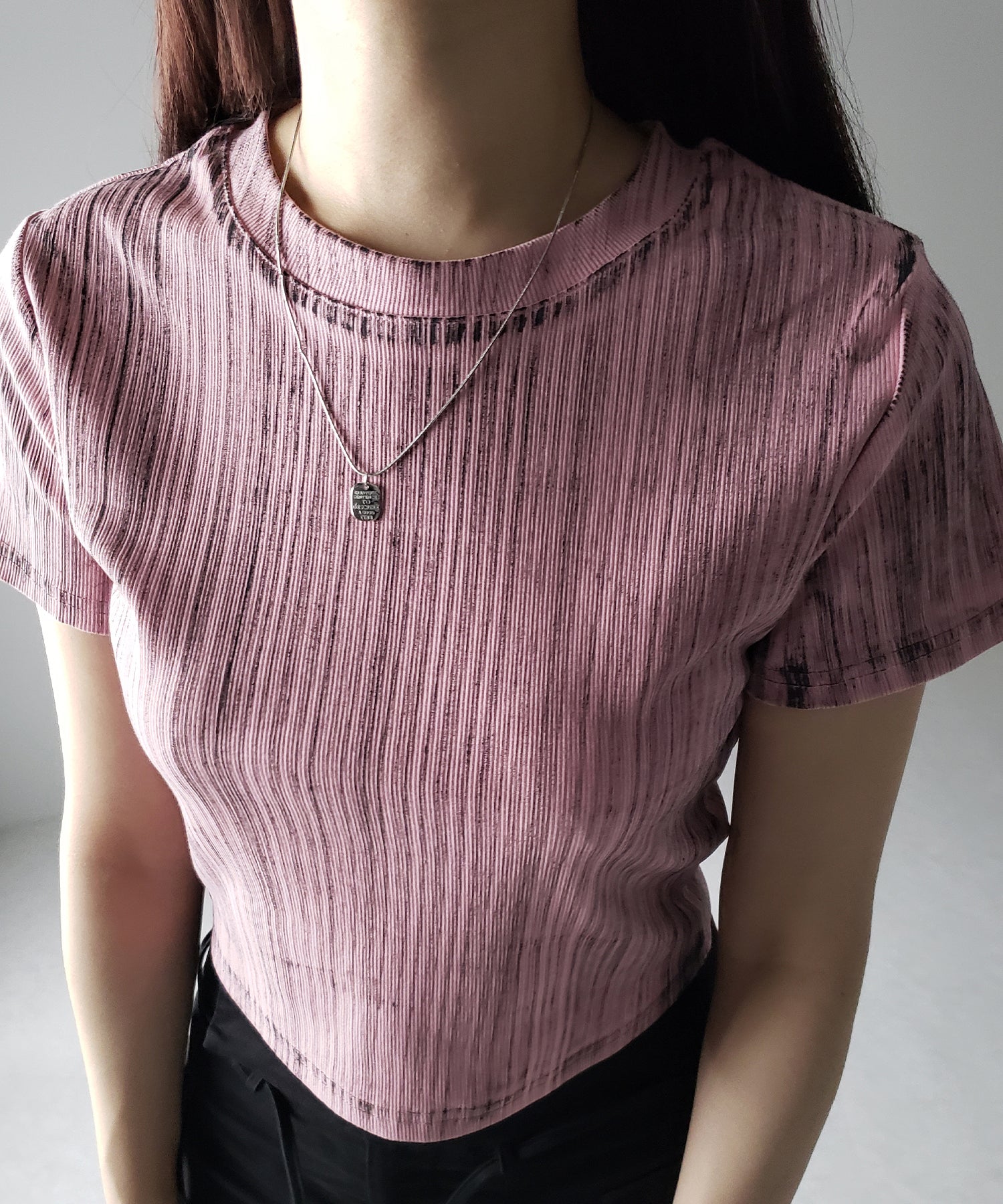 クロップド丈が華奢見えを叶える、かすれプリントTシャツ。