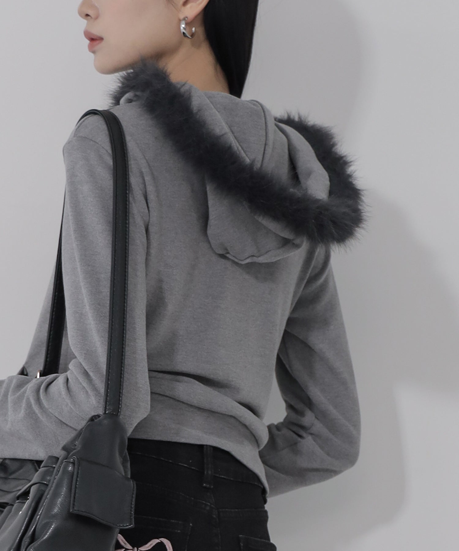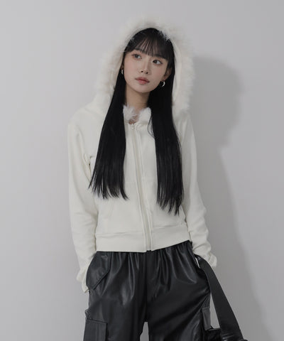 【 3color 】ファーフードジップアップパーカー / fur zipup hoodie