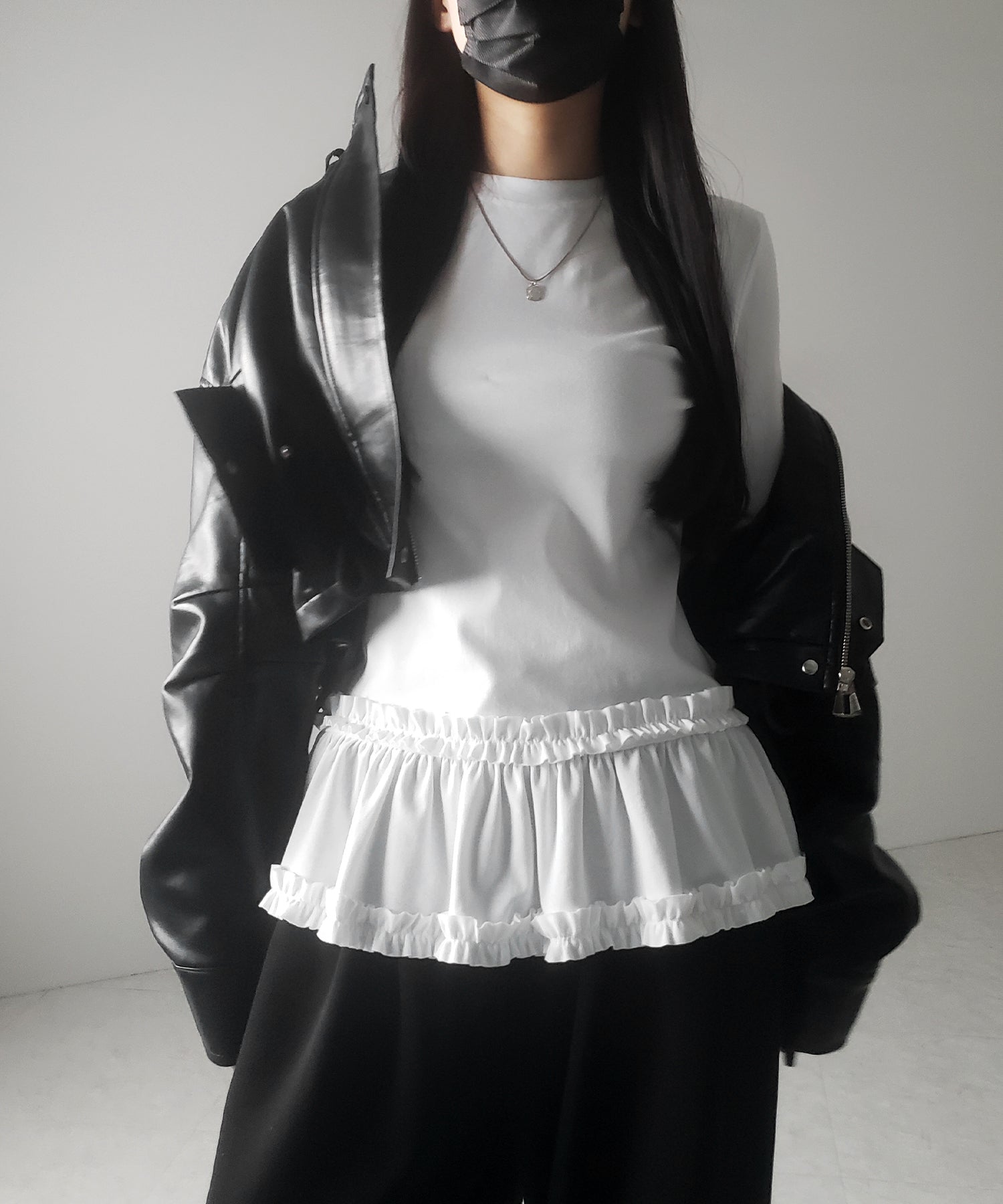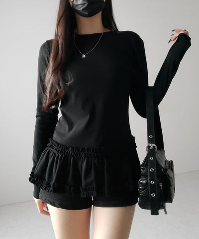 裾フリルレイヤード長袖トップス / hem frill layered long sleeve tops