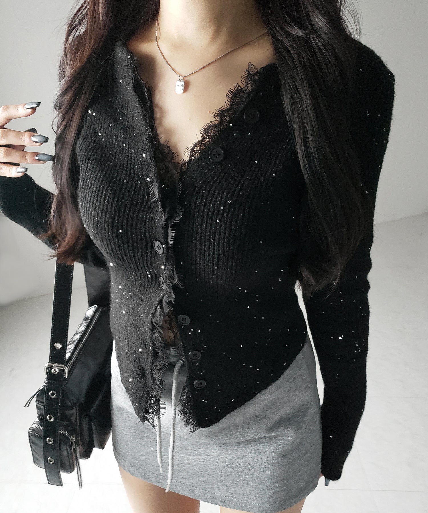 スパンコール×レースニットカーディガンが登場。