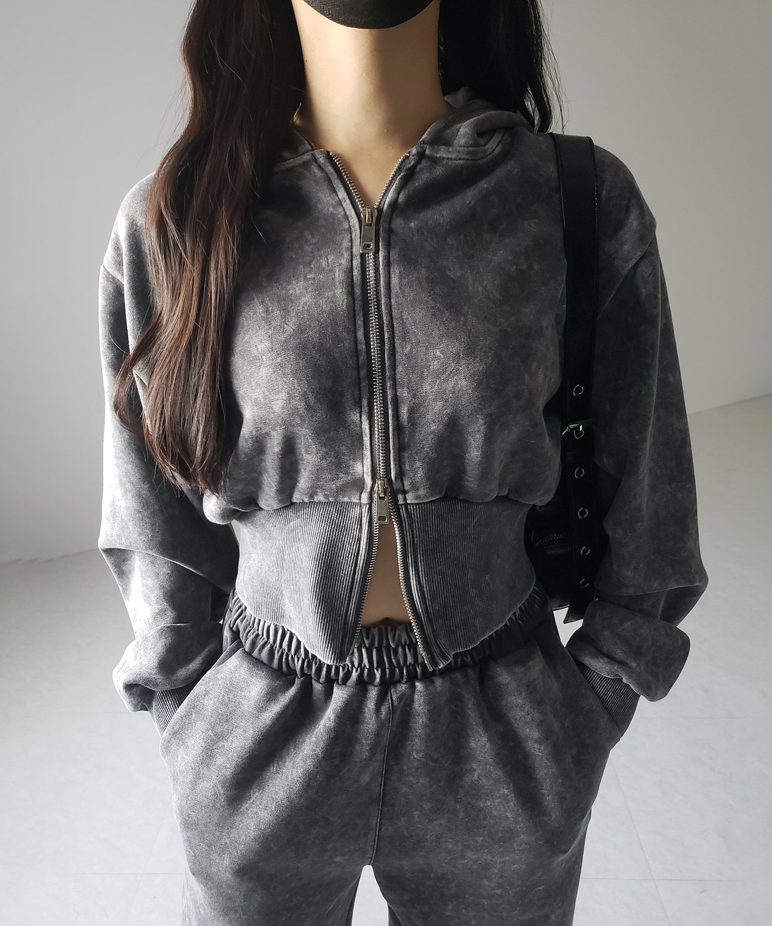 【 セットアップ 】ピグメントヴィンテージショートパーカー + ワイドパンツ SET / pigment vintage short hoodie + wide pants SET
