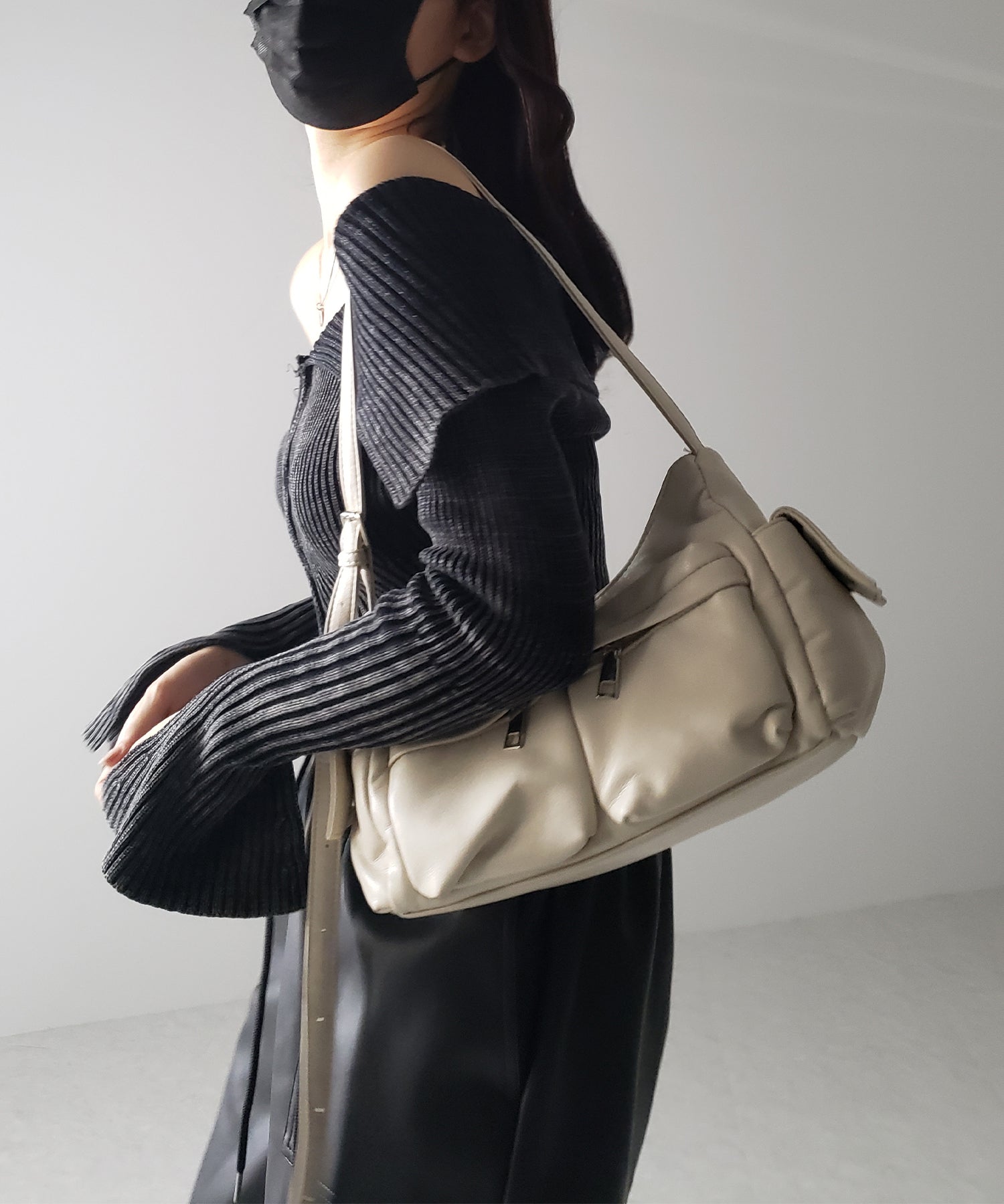 ・持つだけで韓国ストリートな印象を与えるハンドショルダーバッグ。