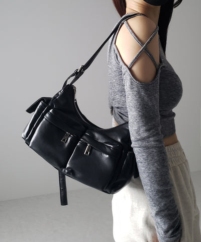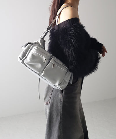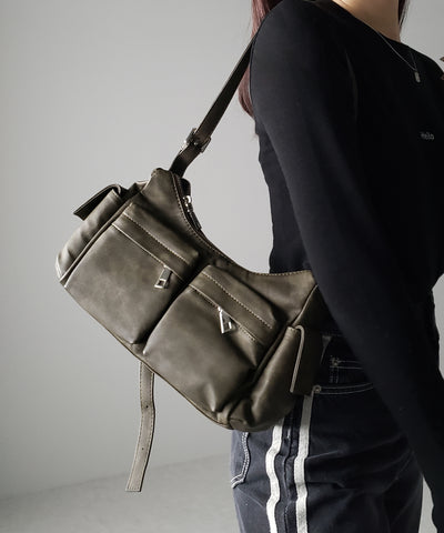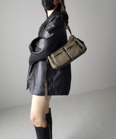 【 2WAY 】アウトポケットフェイクレザーショルダーバッグ
