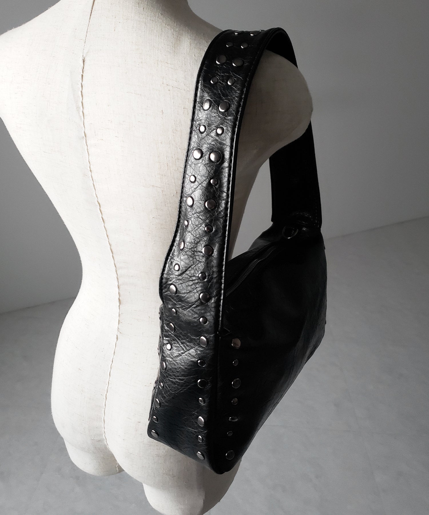 \ ストリートY2Kスタイルを叶える、ヴィンテージ風スタッズショルダーバッグ /