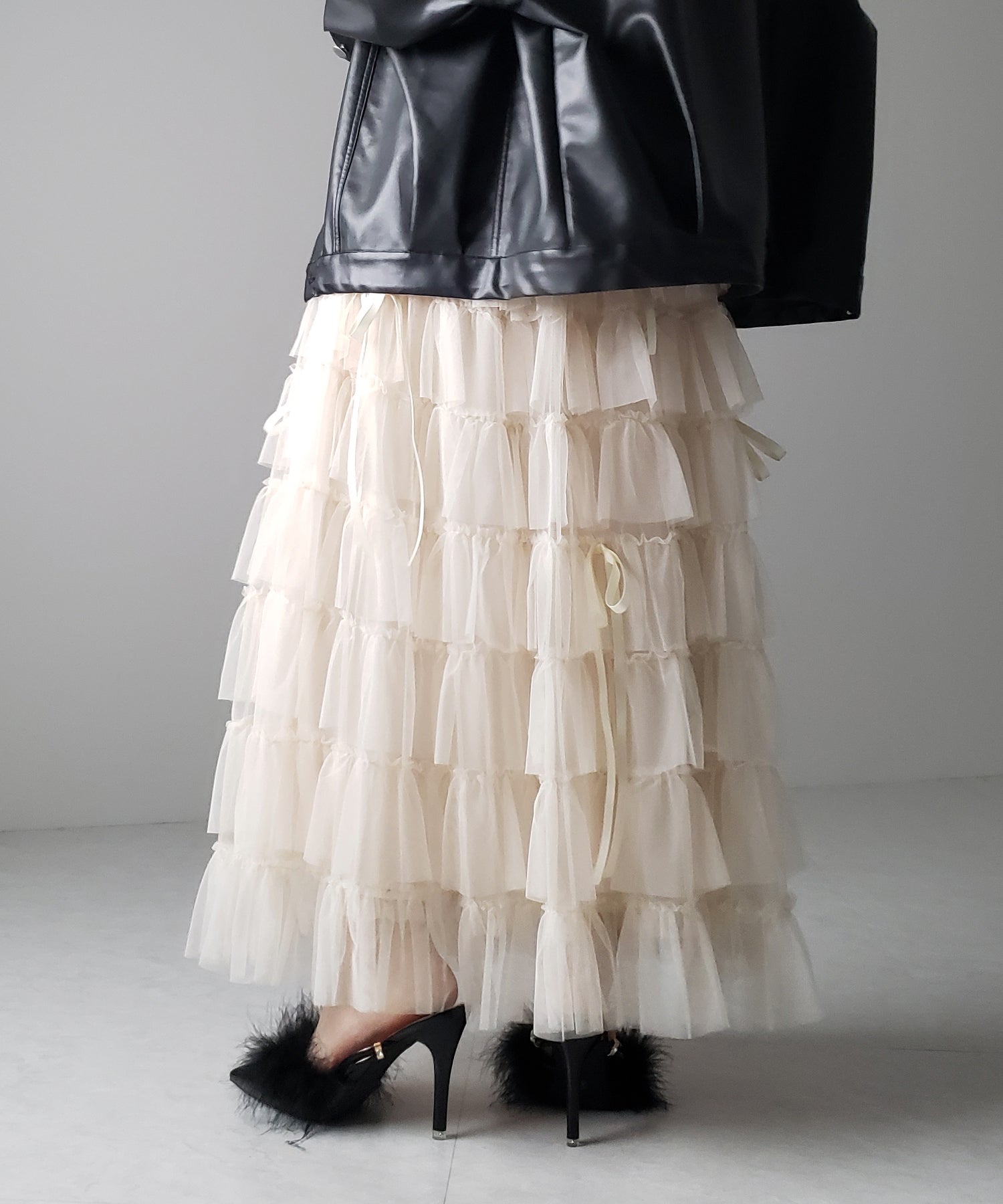 ・ふんわりエアリーなプリーツ加工を施したチュール素材は柔らかでソフトな風合いで履き心地の良い1枚です。